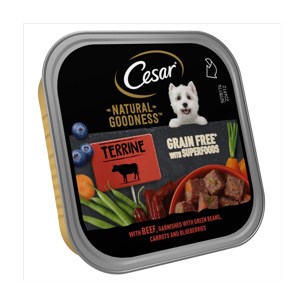 With Beef Meat and Animal Derivatives* (including Beef 4% and a Mix of Beef and Pork Liver 4%), Vegetables* (including Carrots 2%, Green Beans 2%), Minerals, Oils and Fats* (Linseed Oil 0.15%), Derivatives of Vegetable Origin (Chicory Extract 0.11%), Parsley* (0.05%), Fruit* (Blueberry Powder 0.01%), *Natural ingredients