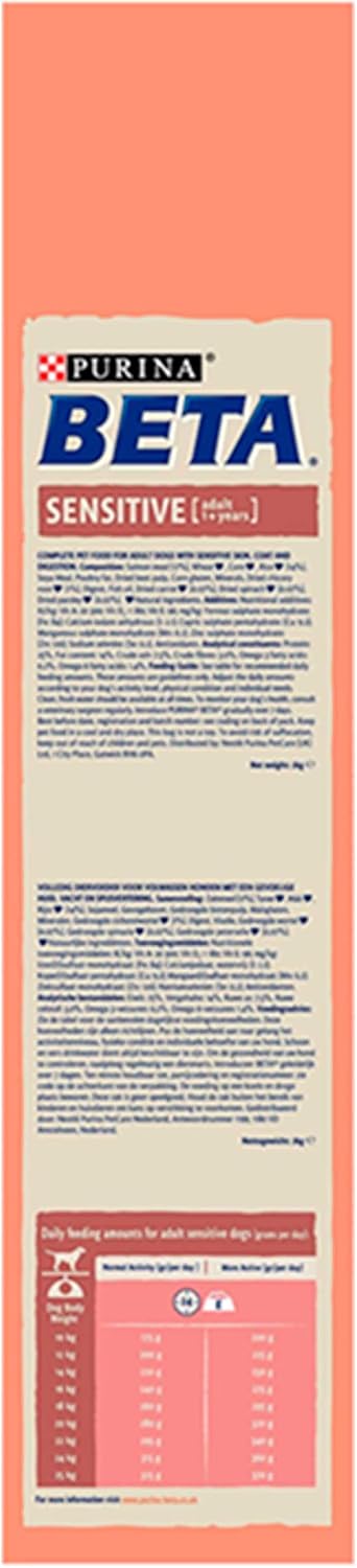 Salmon Meal (17%), Wheat*, Corn*, Rice* (14%), Soya Meal, Animal Fats, Dried Beet Pulp, Corn Protein Meal, Dried Chicory Root*¹ (1%), Digest, Minerals, Fish Oil, Dried Carrot* (0.07%), Dried Spinach* (0.07%), Dried Parsley* (0.07%), *Natural Ingredients, ¹Natural Prebiotic.