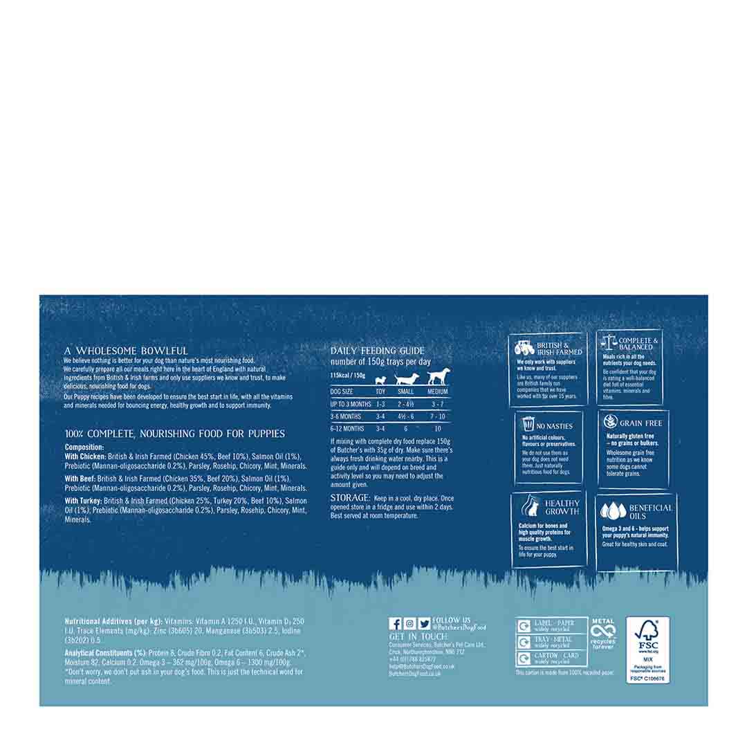 British & Irish Farmed (Chicken 40%, Beef 6%, Liver 4%), Salmon Oil, Parsley, Rosehip, Chicory, Mint, Minerals, Prebiotic (Mannan-Oligosaccharide 0.2%), Docosahexaenoic Acid (DHA 0.07%)