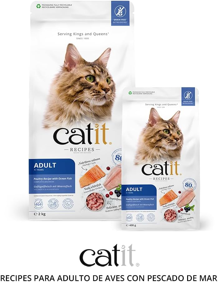 Catit Recipes Adult Poultry & Ocean Fish 400g is a premium cat food made with a blend of tender poultry and ocean fish, providing a balanced meal for adult cats. It contains high-quality protein to support muscle health and a blend of vitamins and minerals for overall wellness. The formula is rich in omega fatty acids for healthy skin and coat. Free from artificial preservatives and fillers, it’s designed for optimal digestion. Ideal for picky eaters, offering both flavor and nutrition.