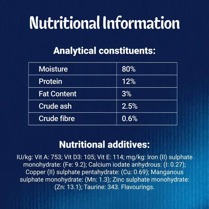 Meat and Animal Derivatives* (14% of which Chicken 8%), Vegetable Protein Extracts, Fish and Fish Derivatives, Derivatives of Vegetable origin, Minerals, Various Sugars, *Chunks: 44% Meat and Animal Derivatives