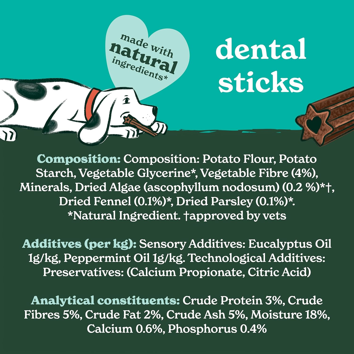 Made with natural ingredients like parsley, peppermint, and eucalyptus for oral care, plus added vitamins and minerals to promote overall well-being. Suitable for dogs over 6 months.