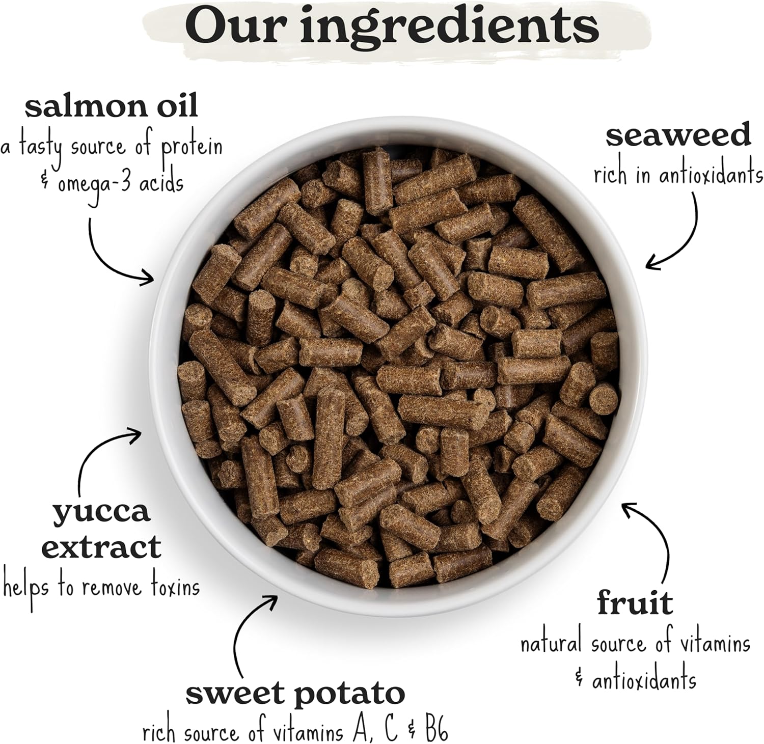 Contains 30% duck, sweet potato, peas, and botanicals like yucca, seaweed, and rosemary. Fortified with essential vitamins and minerals to promote digestion, joint health, and immune support.