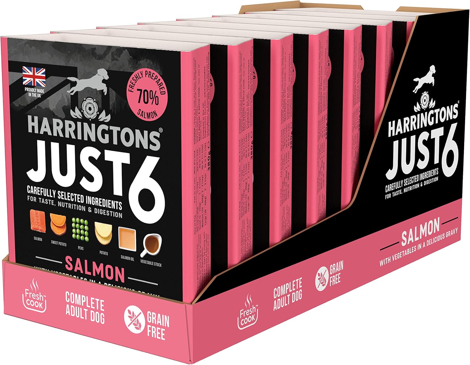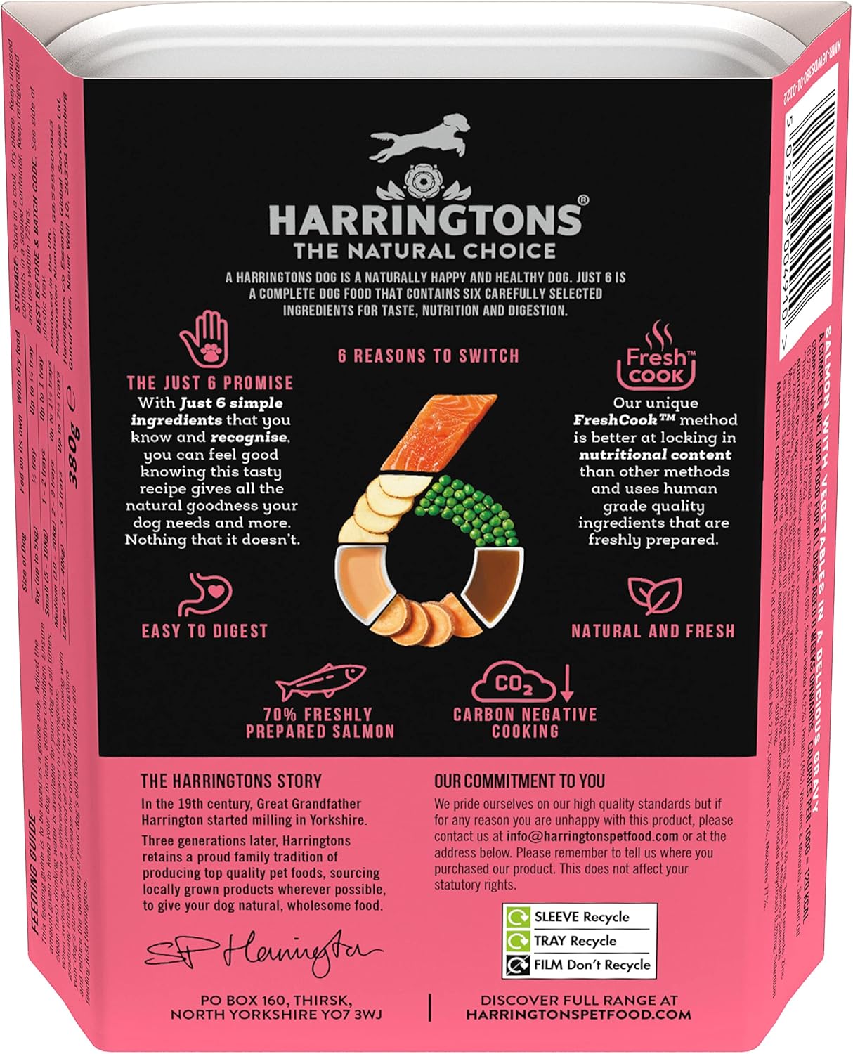 Harringtons Just 6 Salmon with Vegetables in a Delicious Gravy 380g is a nourishing wet food made with only six natural ingredients, perfect for adult dogs with sensitive digestion. Salmon provides high-quality protein and omega fatty acids to support healthy skin and a glossy coat, while a mix of vegetables adds fiber and flavor. Served in a tasty gravy, it’s free from artificial colors, flavors, and preservatives, ensuring a wholesome meal. Enriched with essential vitamins and minerals, it supports immunity and overall wellness. Conveniently packed in a 380g tray, ideal for daily feeding.
