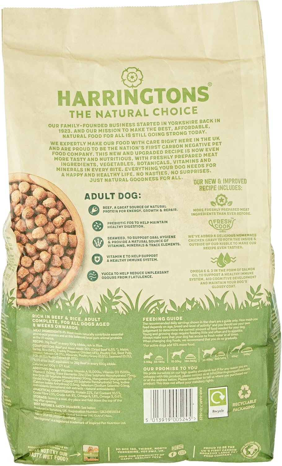 Harringtons Rich in Beef & Rice Dry Adult Dog Food 1.7kg is a complete and balanced meal for adult dogs, made with high-quality beef as the primary protein. It includes rice for easily digestible carbohydrates, promoting healthy digestion and energy levels. This recipe is free from artificial colors, flavors, and preservatives, ensuring natural nutrition. Enriched with essential vitamins and minerals, it supports overall health and vitality.